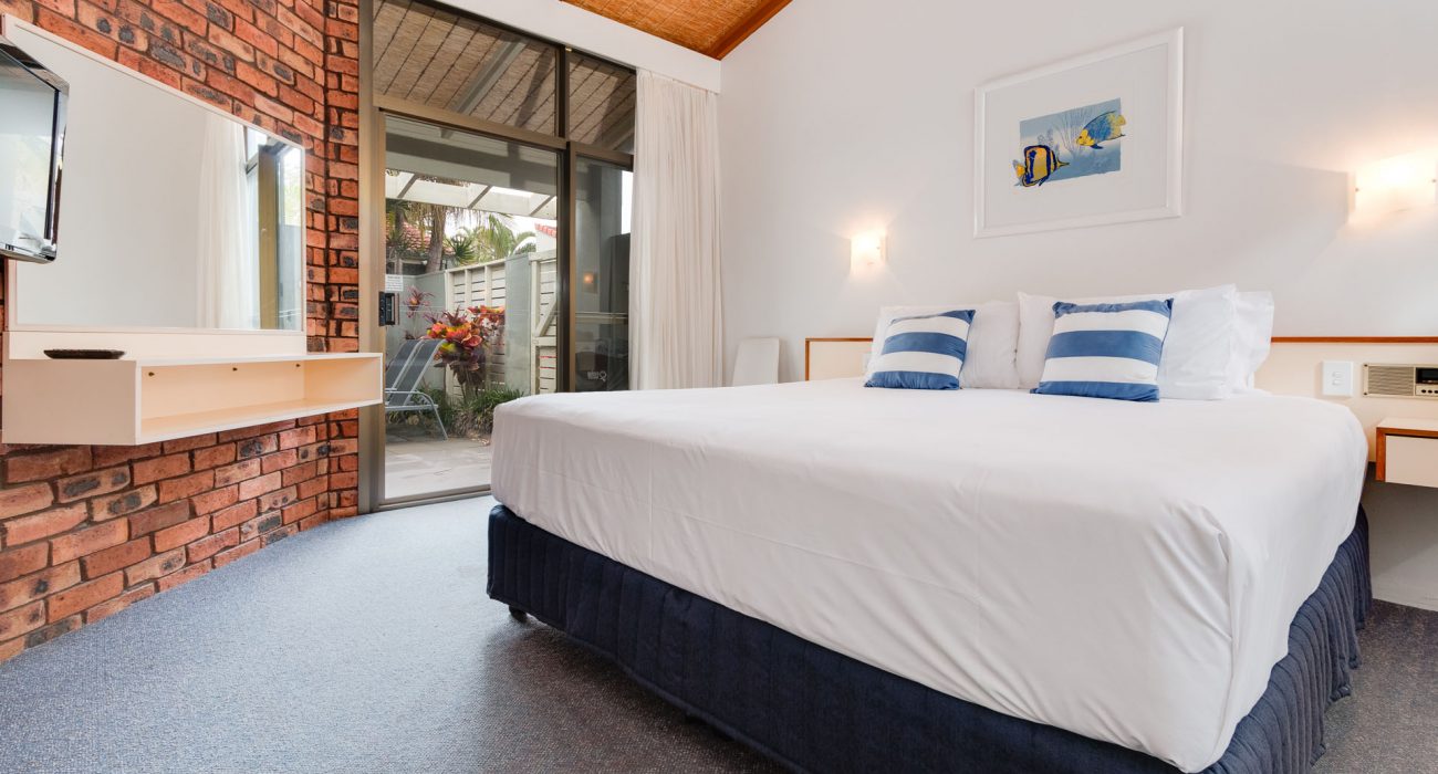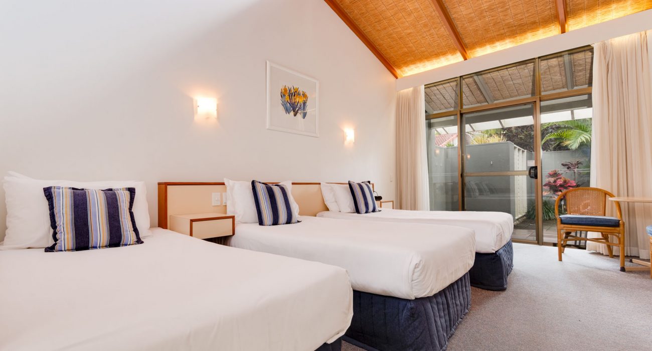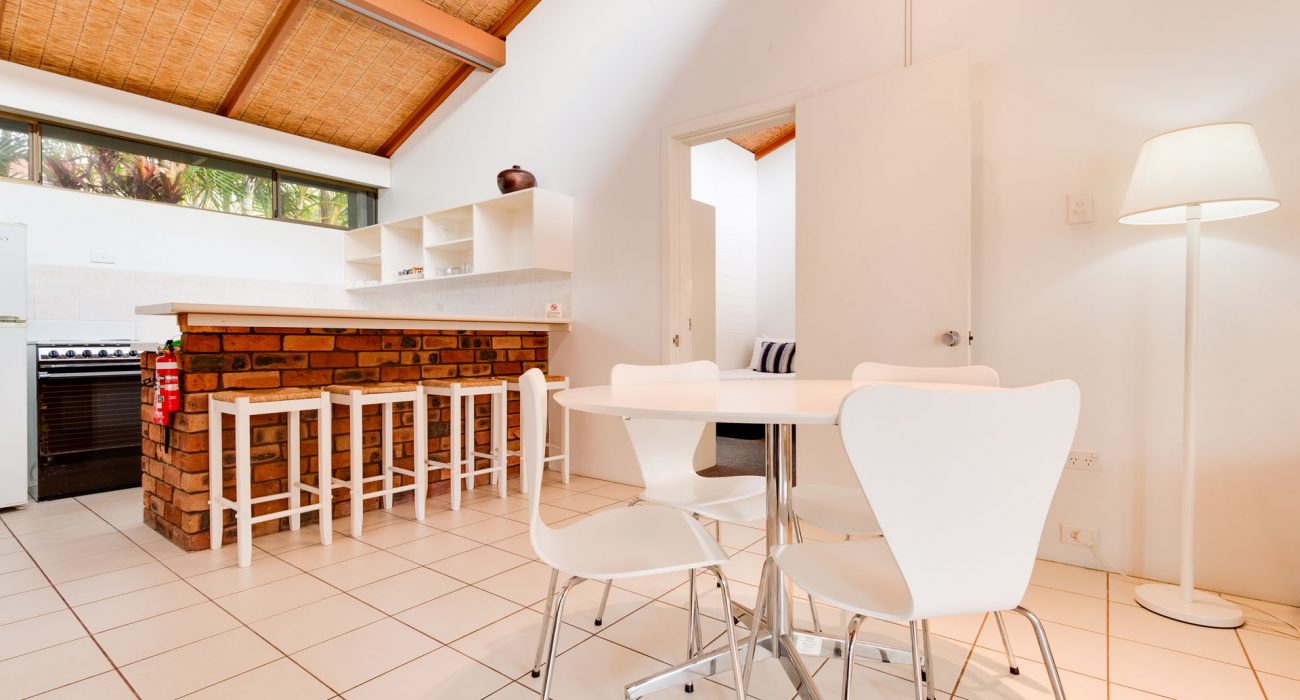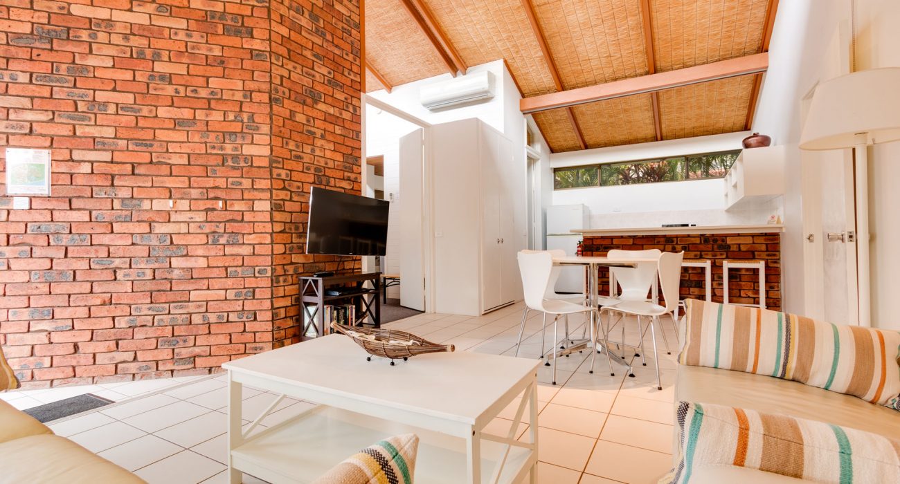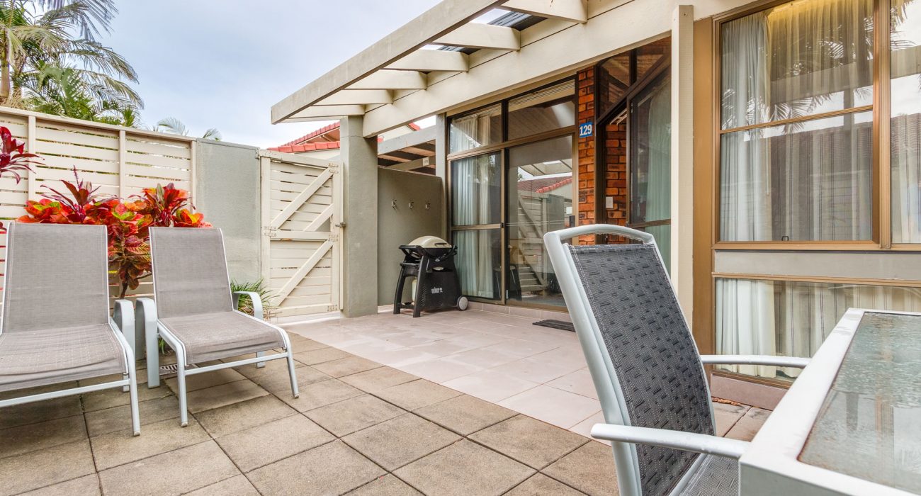 Approximately 96sqm internally, plus over 30sqm of private paved garden courtyard with outdoor furniture and ‘Webber’ BBQ. This is the ideal quiet, conveniently located, ground floor villa for families. Reverse cycle air-conditioning and ceiling fans throughout. Sun block-out blinds and curtains. Two bedrooms: spacious master bedroom with king size bed, ensuite with bath and overhead shower, flat-screen LCD TV; Second bedroom with 3 single beds, flat screen LCD TV, own separate bathroom with bath and overhead shower. Full kitchen including, fridge/freezer, oven/stove top, microwave, dishwasher, toaster, tea & coffee making facilities Separate dining and lounge area with flat-screen LCD TV & DVD player. Laundry includes washing machine and dryer. Villa also includes its own private carport and free WiFi. (sleeps maximum 5 guests)